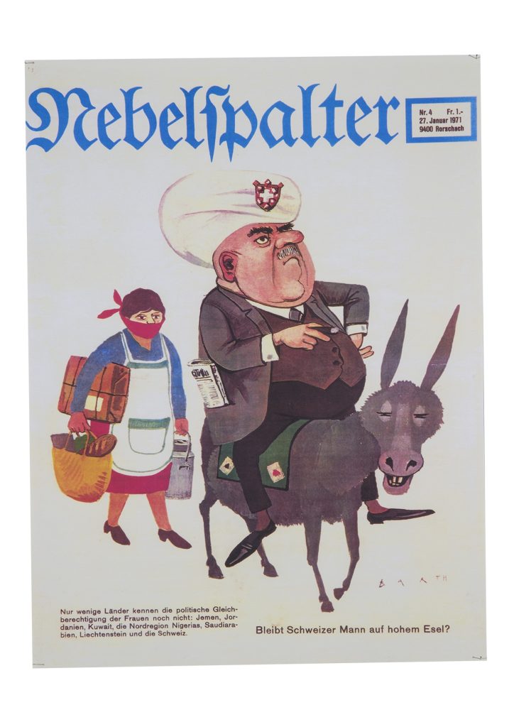 Non mancano, tra le immagini, le vignette satiriche apparse sullo storico giornale umoristico zurighese «Nebelspalter», specchio irriverente della società dell’epoca.