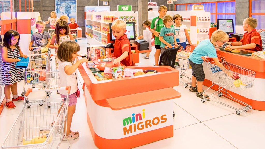 Questo classico e intramontabile gioco non teme certo il confronto con i giochi elettronici basati sulla virtualità, proprio perché non è mai stato così reale. Nella Mini Migros i bambini si immergono nel loro mondo e possono interpretare a scelta il ruolo di collaboratore della filiale, di cliente o di addetto alla logistica.