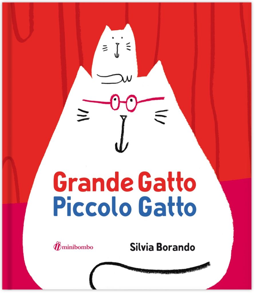 Dopo il mondo in bianco e nero del delizioso Gatto Nero, Gatta Bianca, Silvia Borando torna a raccontarci una storia di gatti, stavolta entrambi bianchi in un mondo coloratissimo, e differenziati tra loro per la stazza: uno è grande e uno è piccolo, appunto. Tutta la storia, intelligente e giocosa, com’è nello stile Minibombo, si svolge intorno a questi due concetti, che a volte sono concreti (grande ciotola e ciotolina, grande gomitolo e gomitolino…) e a volte sono astratti (grandi discorsi, grande paura, piccolo tentativo, grande determinazione…): se all’inizio grande gatto sembra più importante perché fa le cose in grande, a mano a mano che la storia procede e che questi due aggettivi prendono vita in vari contesti, si capisce che non c’è valore predeterminato, non è meglio essere grandi o essere piccoli, dipende.