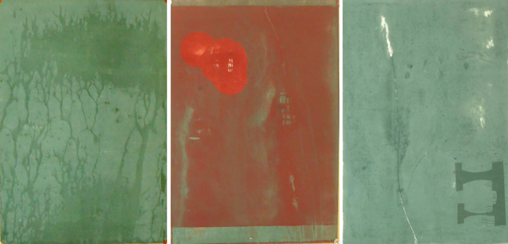 Un segno evidente di trasformazione appare nei formati; non più quadrati e orizzontali, stabili come quelli dei precedenti lavori, ma verticali e instabili. Ciò attesta un cambiamento di direzione dell’artista dal punto di vista espressivo.