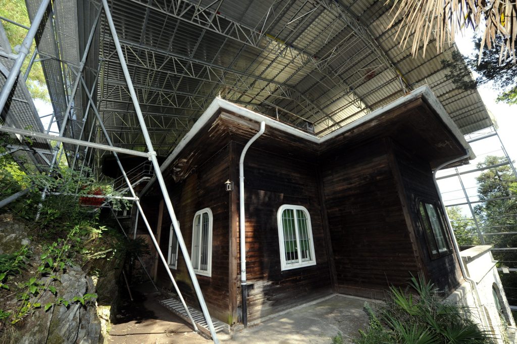 L’edificio è stato voluto nel 1904/05 dai primi coloni del Monte Verità, Ida Hofmann e Henri Oedenkoven. La base è in pietra, ma il resto è interamente in carpenteria lignea, con delle coperture piane. Rispetto all’epoca di realizzazione, non esiste qualcosa di analogo in Ticino. I materiali si ritrovano nell’architettura vernacolare, ma qui sono usati in modo del tutto avulso dal contesto culturale locale. Rispetto alla situazione attuale, si accedeva all’edificio dai piani alti, provenendo quindi dalla casa centrale e da tutto il gruppo delle capanne aria-luce, poste sulla sommità della collina: il rapporto con il complesso era del tutto diverso.