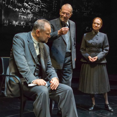 L’evidenziazione degli scarti temporali e dell’alternanza dei momenti di partecipazione e straniamento dei personaggi – perseguita anche attraverso la rigorosa concertazione dei movimenti e dei mutevoli rapporti di prossimità e distanza degli interpreti – contribuisce in misura notevole a variare il ritmo della rappresentazione. L’intelligenza e la sensibilità del regista Mauro Avogadro sono grandi. Ma il coinvolgimento profondo e costante dello spettatore lo si deve anzitutto alla recitazione dei magnifici attori, che sono, come nel 1999, Umberto Orsini (Bohr), Giuliana Lojodice (Margrethe), Massimo Popolizio (Heisenberg). Alla fine, applausi prolungati e acclamazioni, anche per l’autore venuto da oltre Manica: un signore alto e magro, che molto elegantemente si è fatto vedere per non più di un minuto sotto il boccascena, ed è tornato subito al suo posto, in platea, con passo svelto e un’espressione soddisfatta.