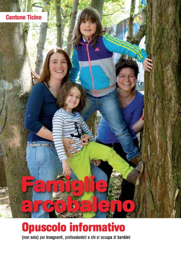 Cosa significa essere famiglia oggi? La storia e l’antropologia ci raccontano modelli familiari molto diversi tra loro che sono specchio di un costante cambiamento sociale e culturale. Le famiglie allargate di un tempo, nelle quali vivevano sotto lo stesso tetto nonni, zii e cugini, tipiche di una realtà contadina, oggi in Ticino non si trovano più. Ci sono nuovi modelli di famiglia che si sono imposti e altri che stanno emergendo. Tra le nuove tipologie di famiglia si trovano anche le famiglie arcobaleno. Proprio per questo è stato pubblicato, con il sostegno della Delegata per le pari opportunità del Canton Ticino Rachele Santoro, un opuscolo intitolato Famiglie arcobaleno dove si possono trovare informazioni utili per insegnanti e professionisti che si occupano di bambini.