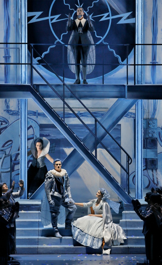 I personaggi principali sono muniti di ali da insetti e il rapido duello fra Lohengrin e Telramund si svolge nell’aria, con gran divertimento del pubblico. Il cast offre due splendide interpreti femminili, la fremente Anja Harteros, che con Elsa ha una lunga frequentazione, e la grande Waltraud Meier, che con Orturd fece il suo debutto sulle scene. Beczala propone un Lohengrin «all’italiana», forte del fatto che proprio questa è considerata l’opera più «italiana» di Wagner. Georg Zeppenfeld è un re Enrico potente e convincente, mentre il Telramund di Tomascz Konieczni è ridotto a una sorta di macchietta del «cattivo» di turno. Christian Thielemann sigla un primo preludio monumentale e religioso, firmando un Lohengrin meno passionale, all’insegna della classicità.