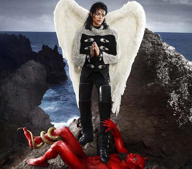 Ad esempio, Kehinde Wiley, autore dell’ammirevole ritratto dell’ex premier Obama seduto fra le piante, qui, affrontando Jackson, ne coglie la megalomania: parodiando una celebre tela di Rubens, lo ritrae a cavallo, alla stregua di un redivivo Filippo II. A sua volta, Mark Ryden, surrealista californiano, intitola significativamente Dangerous una composizione barocca, dedicata al «Re del Pop». Mentre il fotografo David LaChapelle nell’installazione Un sentiero luminoso, lo vede come un angelo, inseguito dal diavolo.