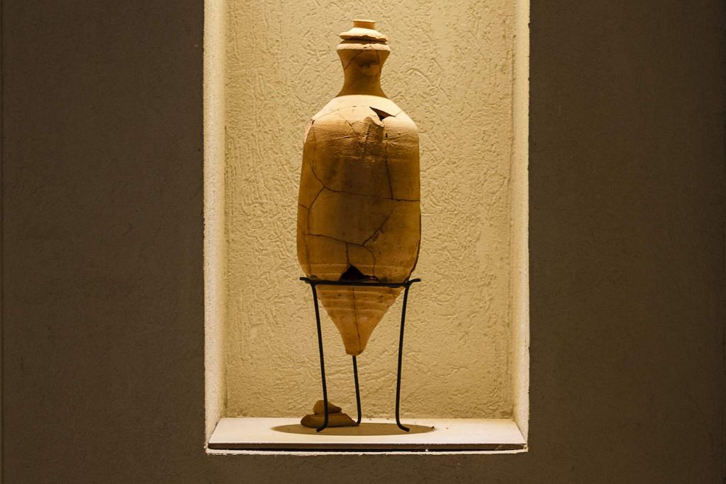 E fin qui abbiamo parlato di acqua. Ma lunga storia nella regione hanno anche il vino e l’attività vitivinicola. Vinaccioli di vite silvestre sono stati rinvenuti tra i resti di un accampamento di cacciatori raccoglitori del Paleolitico – datati 19’400 anni or sono – situato sulle rive sud occidentali del Lago Tiberiade, in Israele, dove gli esperti fanno risalire la domesticazione della vite durante l’età del Rame (periodo Calcolitico, IV millennio a.C.). Le citazioni che riguardano il vino nella Bibbia sono diverse e la vite appare come simbolo di abbondanza. Nella regione erano presenti vitigni antichi di cui oggi non abbiamo più traccia, in seguito a una concomitanza di fattori umani e naturali. Con l’arrivo del dominio ottomano ci fu un bando del vino per motivi religiosi, cui dobbiamo aggiungere carestie e il declino economico della regione, fattori che condannarono la produzione vinicola in terra di Israele. Per poter stappare nuovamente una buona bottiglia di vino israeliano dobbiamo arrivare a fine Ottocento, quando Edmond de Rothschild fece portare dalla Francia alcuni vitigni di pregio e li fece impiantare a Zichron Ya’akov, sul monte Carmelo, sud di Haifa.