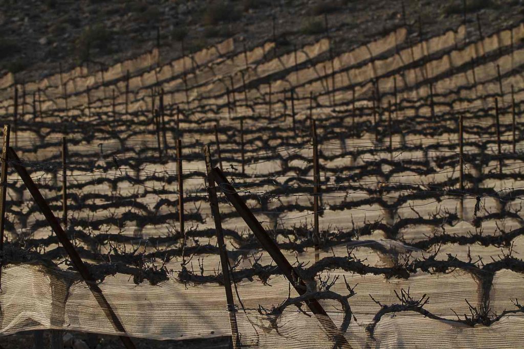 I viticoltori del deserto spesso utilizzano gli antichi terrazzamenti per piantare le viti, ma anche alberi da frutto, sfruttando la porosità della roccia e del terreno locali in grado di immagazzinare e rilasciare poi gradualmente l’umidità accumulata ad esempio durante la notte. L’acqua, incamerata nel sottosuolo durante le alluvioni lampo, resta a disposizione delle piante nei mesi più secchi, garantendo loro la sopravvivenza e un carattere molto deciso ai vini locali, che ad ogni sorso ci raccontano della capacità dell’uomo e della vite di adattarsi e resistere anche nelle condizioni più difficili.