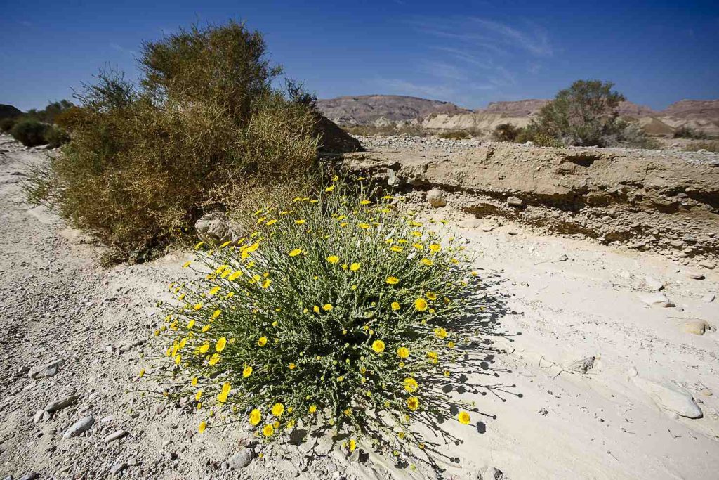Il 60 per cento del territorio israeliano è occupato dal deserto del Negev: 13mila chilometri quadrati di sabbia, roccia e polvere. Il clima è prevalentemente arido e le precipitazioni variano dai 200-305 mm l’anno nell’area di Be’er Sheva, ai 30 mm scarsi nella regione di Elat, nell’estremo sud. Eppure, come abbiamo visto nelle immagini di cronaca recente, non sono infrequenti le alluvioni lampo, con i torrenti in secca che si riempiono di acqua e fango in pochissime ore, trascinando tutto con loro, ma lasciandosi dietro, almeno per breve tempo, un po’ di vita. La vegetazione altrimenti è scarsa, così come le specie viventi. Il Negev è così da molto, moltissimo tempo: qui è stata rinvenuta la porzione di superficie terrestre più antica del pianeta, un’area rimasta intatta per 1,8 milioni di anni, ad onta di agenti atmosferici e sconvolgimenti geologici. Ciò nonostante, l’uomo ha fatto la sua comparsa da queste parti già nell’Età della Pietra (circa 7000 anni a.C.), con insediamenti più articolati dell’Età del Rame e del Bronzo (tra il 4000 e il 1400 a.C.).