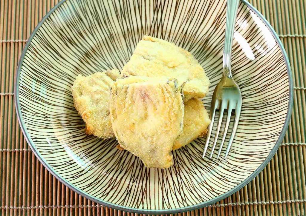 Ingredienti: per 4 persone: 4 carciofi · 200 g di qualsiasi formaggio morbido · 1 uovo · pangrattato · olio per friggere · sale.