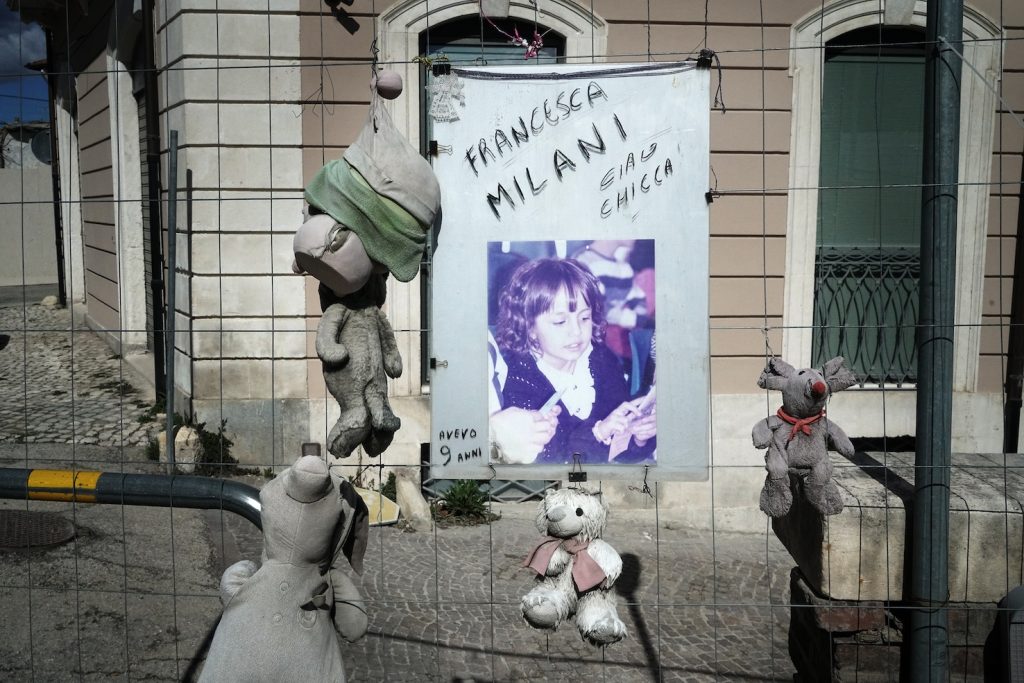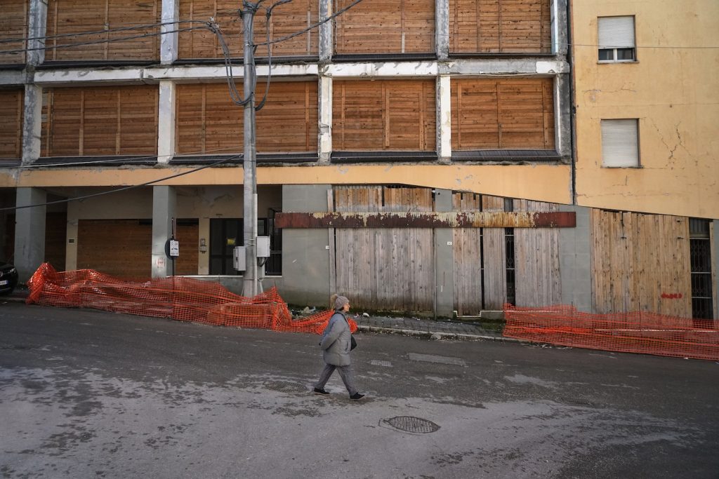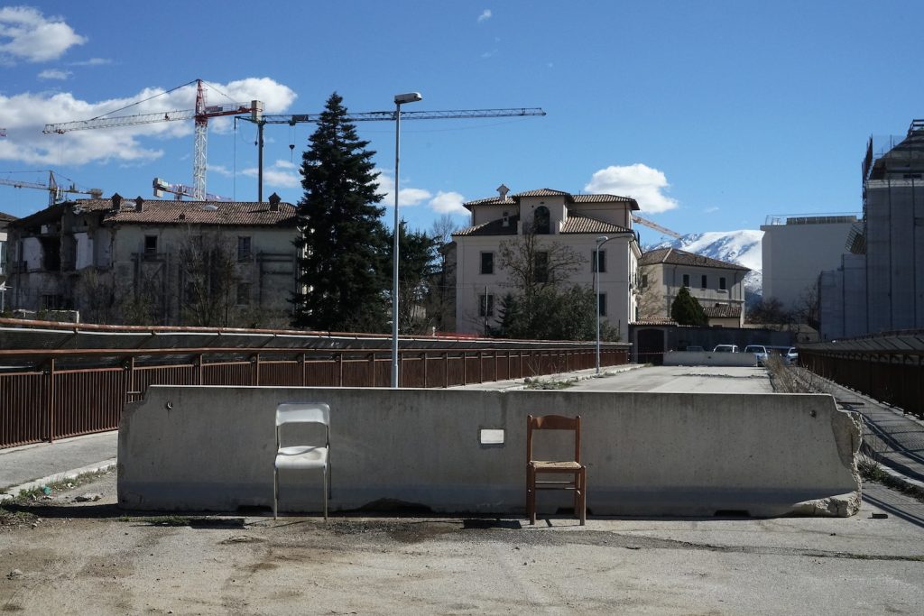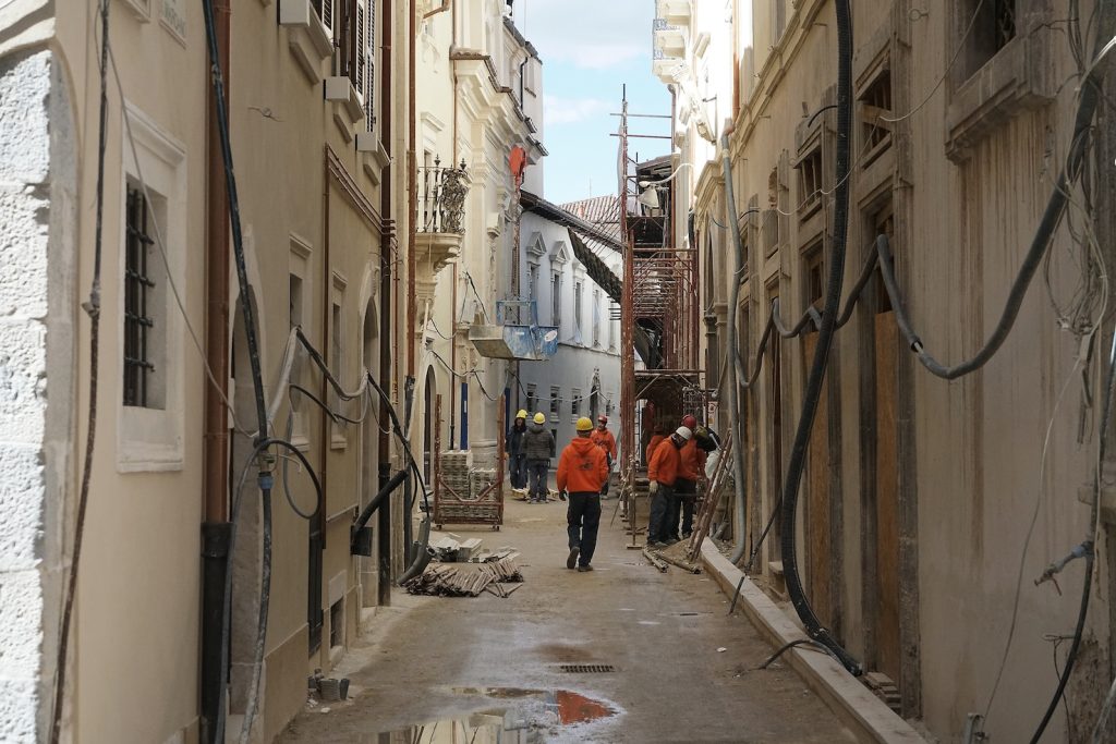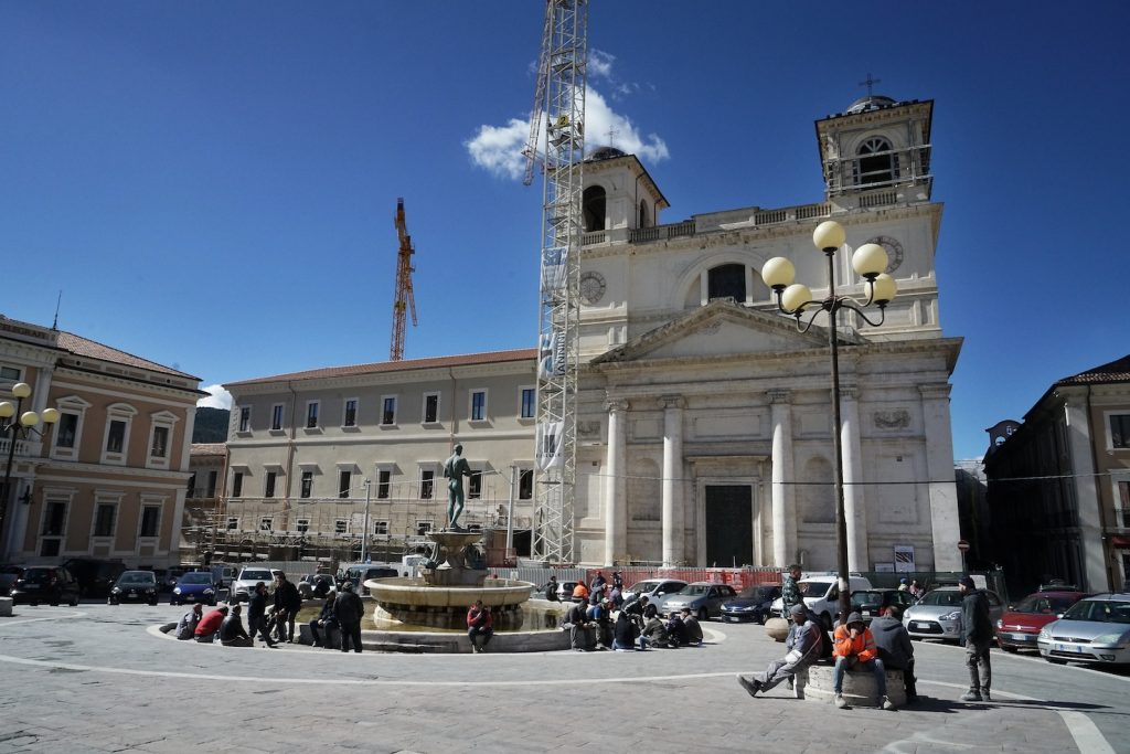 Camminando per i vicoli vuoti del centro, si sente solo il rumore dei martelli pneumatici e delle gru, si respira polvere e odore di muffa. «I ricordi che ho della mia città erano l’odore del pane e il colore rosa», mi dice Barbara, che lotta per far rinascere la sua città da subito dopo il sisma. «Il centro storico, la piazza del Duomo – continua Barbara – era il cuore di questa città. La vita scorreva lungo queste strade e piazze, gli anziani sedevano intorno alle fontane della piazza, i bambini giocavano nei vicoli e potevi vedere negozi di abbigliamento accanto a quelli degli artigiani. Gli studenti universitari riempivano di voci e risate le strade. Adesso non c’è più niente».