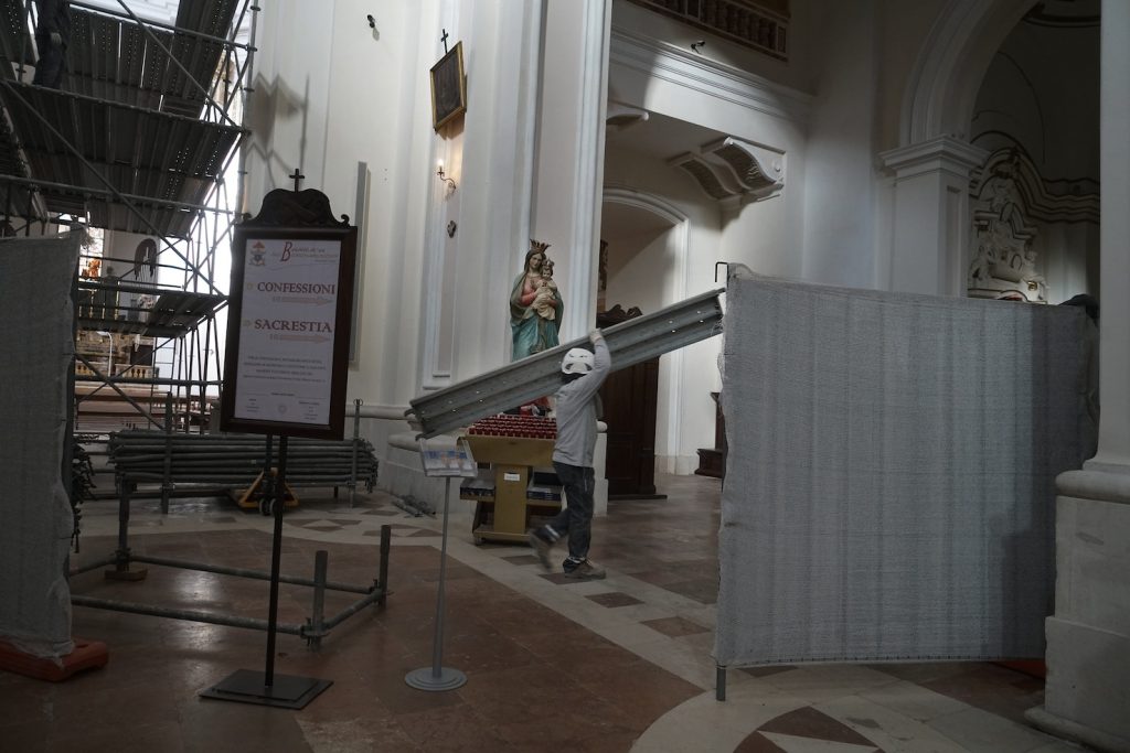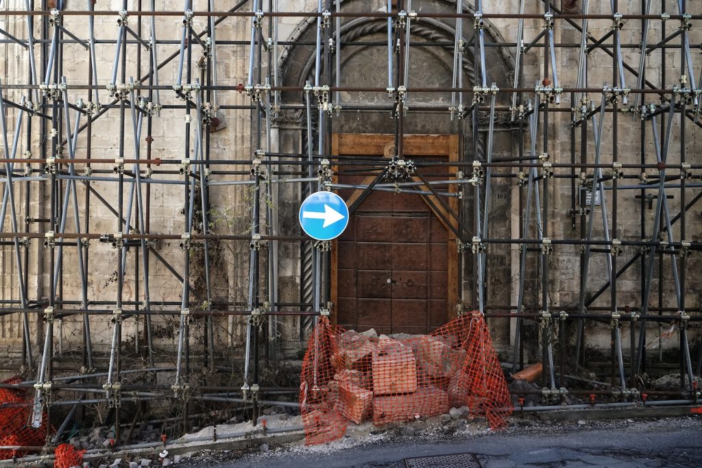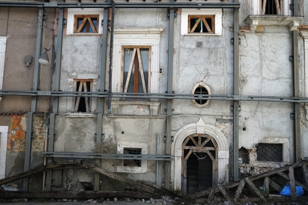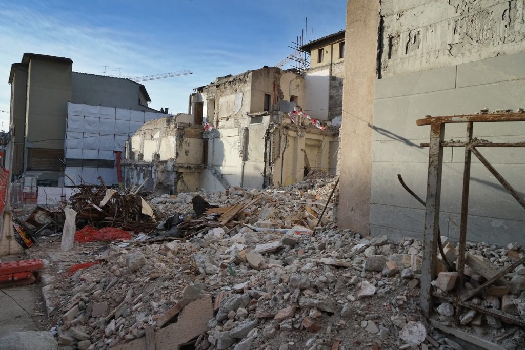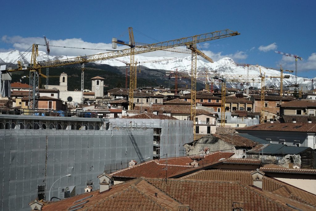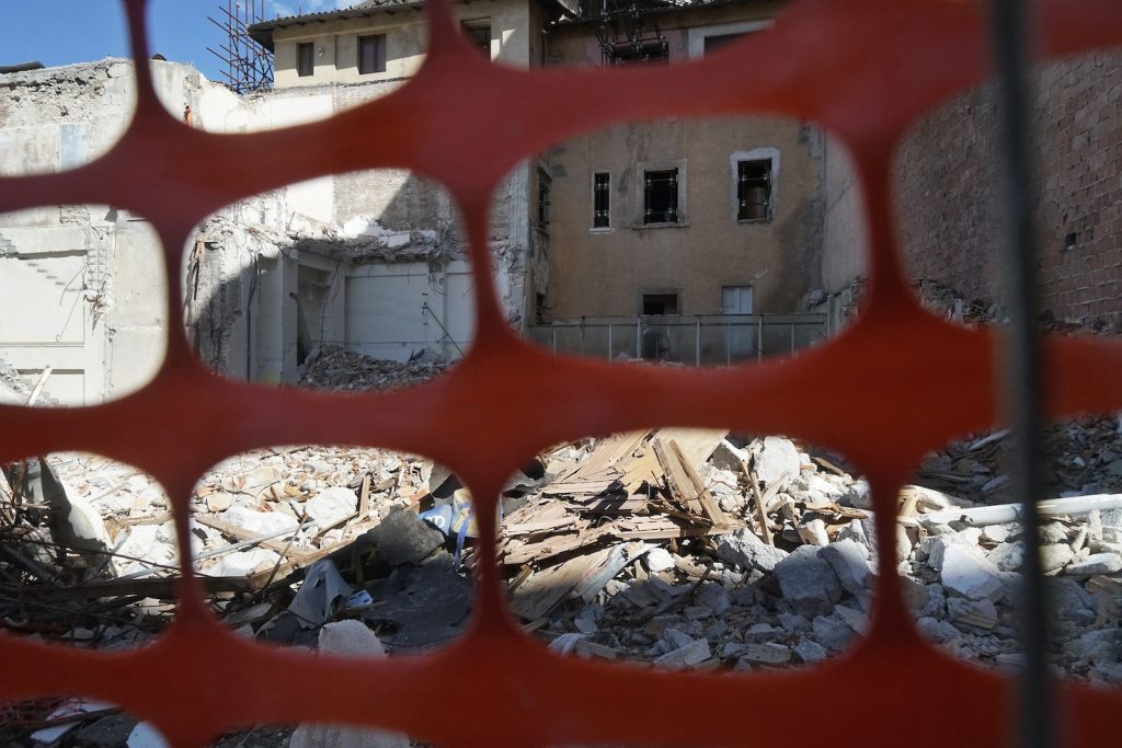 Camminando per i vicoli vuoti del centro, si sente solo il rumore dei martelli pneumatici e delle gru, si respira polvere e odore di muffa. «I ricordi che ho della mia città erano l’odore del pane e il colore rosa», mi dice Barbara, che lotta per far rinascere la sua città da subito dopo il sisma. «Il centro storico, la piazza del Duomo – continua Barbara – era il cuore di questa città. La vita scorreva lungo queste strade e piazze, gli anziani sedevano intorno alle fontane della piazza, i bambini giocavano nei vicoli e potevi vedere negozi di abbigliamento accanto a quelli degli artigiani. Gli studenti universitari riempivano di voci e risate le strade. Adesso non c’è più niente».