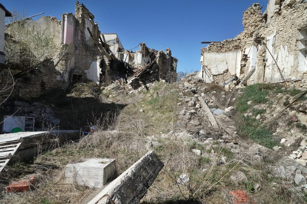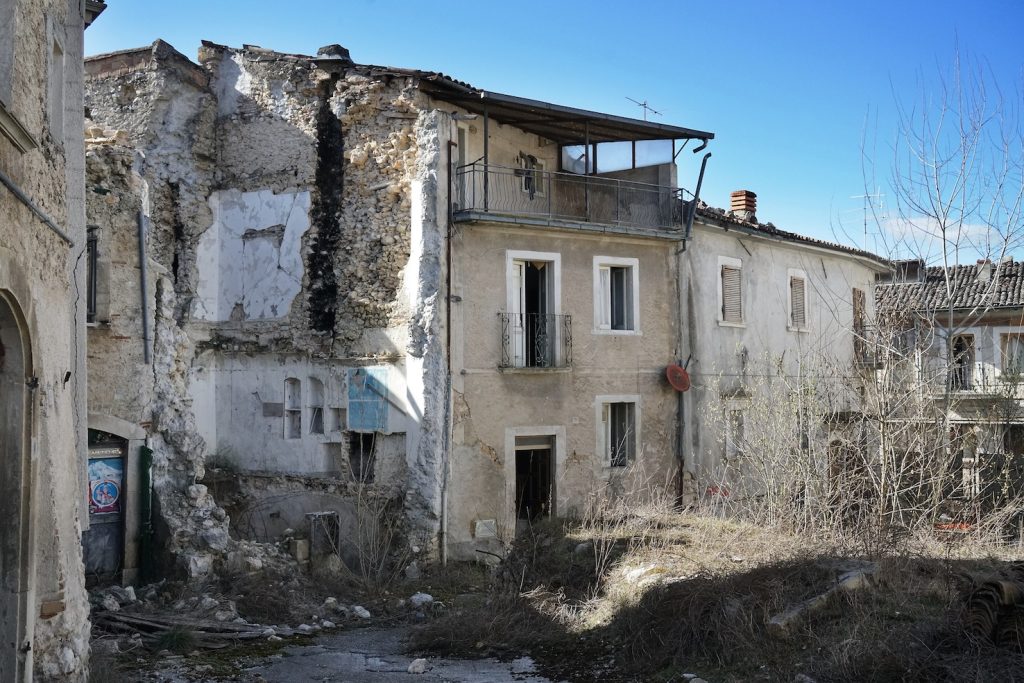 6 aprile 2009, ore 3.32, 6,3 della scala Richter. Sono passati ormai 10 anni dal tremendo terremoto che ha colpito l’Aquila e i paesi intorno causando 309 morti. Oggi, in città, ci sono ancora molti cantieri aperti. Nella zona rossa, il centro storico della città, quella che è stata la parte più colpita del capoluogo, molti palazzi sono stati ricostruiti più belli di prima, ma tanti ancora hanno le impalcature e lavori in corso, mentre altri mostrano ancora le loro ferite. Sono solo puntellati per evitare che possano crollare, i portoni sbarrati da catene, le finestre rotte o chiuse da tavole, buchi nel muro che permettono di intravvedere l’interno. Per questi, il tempo, non sembra proprio passato. Alzando lo sguardo si vedono terrazzi e balconi con ancora gli oggetti abbandonati 10 anni fa: un passeggino, vestiti, una vecchia bicicletta.