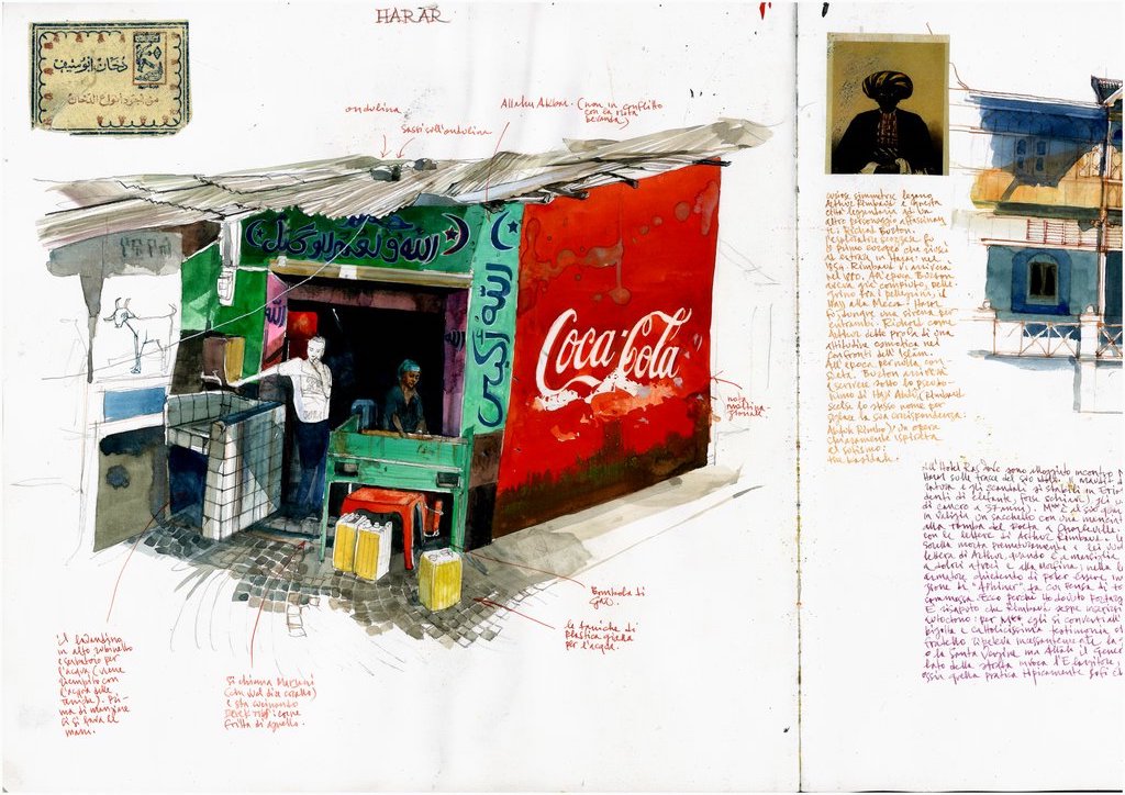 Su di lei aleggia la grazia appena sfiorita della mezz’età. Incoraggiato da un sorriso mi presento e vengo invitato a sedere al suo tavolo. Si chiama M*, vive in un sobborgo di Parigi e ha proprio voglia di raccontarsi. Si definisce una groupie di Arthur Rimbaud. È ad Harar proprio sulle tracce del suo idolo. Infatti il poeta maudit di Charleville Mézières, abbandonata la letteratura e gli scandali, disertore e in fama di avventuriero, si stabilì in Etiopia e visse ad Harar gli ultimi undici anni della sua breve vita (morì di cancro a 37 anni), impegnato in commerci vari: caffè, zanne di elefante, armi, forse schiavi. M* è al suo quarto pellegrinaggio ad Harar. Nel 2009 aveva messo in valigia un sacchetto con una manciata di terra raccolta qui, poi deposta accanto alla tomba del poeta a Charleville.