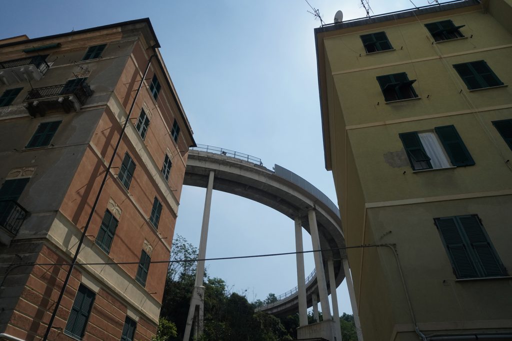 «Papà, è crollato il ponte». «Non dire stupidaggini Daniele, scherzi sempre». La ricorda così, Anacleto  68 anni, quella mattina di Genova del 14 agosto 2018. Lo incontro davanti al portone del palazzo dove abita, a via del Campasso. La strada poco più avanti è sbarrata da lamiere e cemento. Il suo è l’ultimo palazzo prima dell’inizio della zona rossa, la parte inaccessibile, la zona del ponte caduto che passava sopra ai palazzi e al torrente Polcevera ed univa Sampierdarena a Cornigliano, dove alcune case sono state già abbattute e presto anche quelle disabitate e ancora in piedi seguiranno la stessa sorte. Anacleto fa il cuoco ed è arrivato da piccolo a Genova nel ’67, proprio quando stavano inaugurando il viadotto. «Per noi era un punto di riferimento, la sera con mia moglie ci si affacciava al balcone a guardare le luci delle auto che passavano. Può sembrare una cosa strana per chi non è di qui, assurda forse anche. Non era certo la visione più bella del mondo, ma era il nostro ponte. Io ci passavo mille volte all’anno. E adesso è strano non vederlo più».