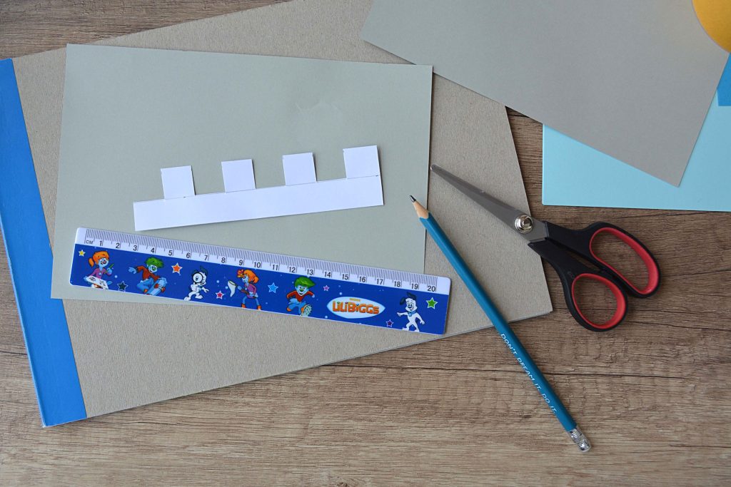 Tagliate la smerlatura nei tubi indicati per creare le torri del vostro castello. Potete farlo a occhio, ma se vi piace la precisione, prendete una strisciolina di carta avvolgetela intorno al tubo in modo da avere la giusta circonferenza e tagliatela in corrispondenza. Misurate la lunghezza, suddividete per 8 parti e andate a creare il vostro cartamodello.