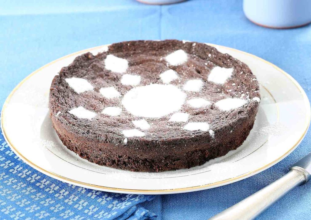 Sfornate la torta e lasciatela raffreddare prima di sformarla; spolverizzatela di abbondante zucchero a velo e servite.