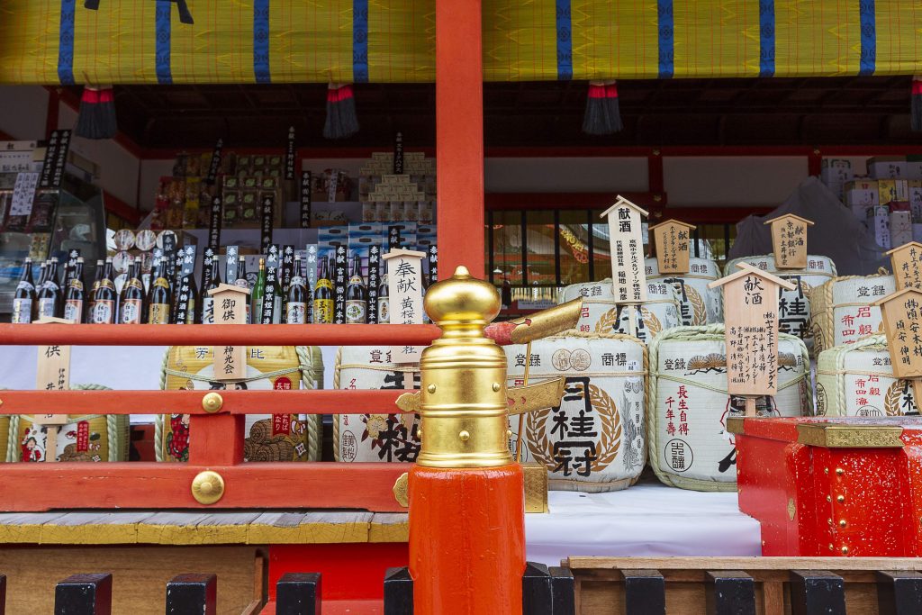 I monaci cominciano a suonare e l’eco delle loro grida, insieme ai rintocchi, comincia ad arrivare mentre ci spostiamo, pazienti, metro dopo metro, dall’entrata, lungo i viali che si snodano all’interno del tempio. Ci vogliono un paio di ore buone per arrivare fin nei pressi del padiglione che ospita la campana. La sua vibrazione si fa sempre più forte. La lentezza con cui si avanza, l’umidità e qualche goccia di pioggia non sembrano scoraggiare nessuno. I pellegrini arrivano, assistono ad un paio di rintocchi e poi vengono gentilmente fatti uscire. Il nostro timing è perfetto: raggiungiamo la meta proprio poco prima della mezzanotte, con un giovane monaco che scandisce i secondi che ci separano dal nuovo anno. La scena è solenne. L’illuminazione suggestiva. I monaci sono tutti raccolti intorno alla campana: 16 di loro, ognuno una corda in mano, fanno oscillare avanti e indietro il tronco che la colpirà. Il monaco di turno a suonare il rintocco grida «Ee hitotsu» (ancora una volta!), gli altri gli fanno eco e poi rispondono in coro «Sōre» (Ora!), al che il primo si appenderà alla corda principale con tutto il suo peso vibrando il colpo sulla campana. La gente intorno sgomita per prendere foto e registrare video, con gli uscieri che pazienti, ma inflessibili fanno fluire il pubblico verso l’uscita. C’è molta partecipazione, è un momento molto sentito dai giapponesi. Ci sono persone di ogni età e anche diversi stranieri. Il ritmo dei rintocchi, le vibrazioni della campana, le voci ieratiche dei monaci creano una suggestione forte che fa dimenticare stanchezza e freddo. Usciamo un po’ frastornati e raggiungiamo la strada che porta allo Yasakajinja: il viale è completamente invaso da una marea umana che attende di entrare nel santuario shintoista (la religione autoctona del Giappone) per il rito del Hatsumōde (初詣) ovvero la prima visita dell’anno.