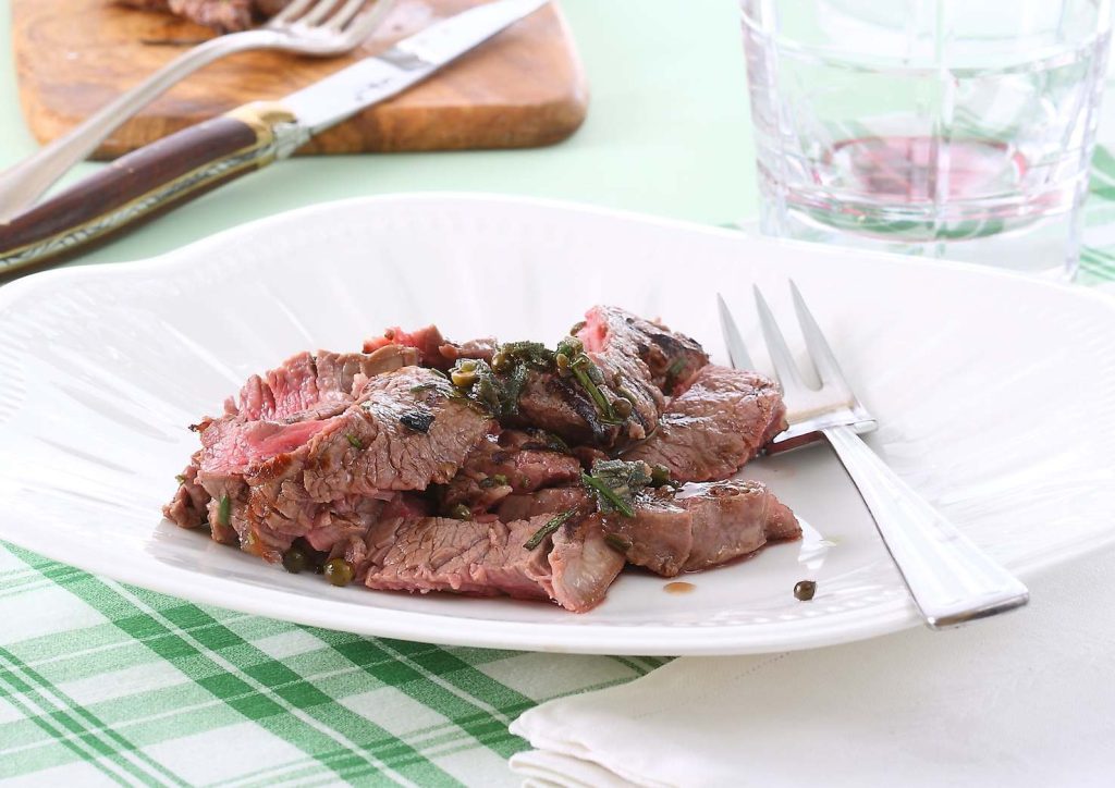 Ingredienti per 4 persone: 1 filetto di manzo da 800 g · erbe fresche a piacere · vino Porto o altro · burro · sale e pepe.
