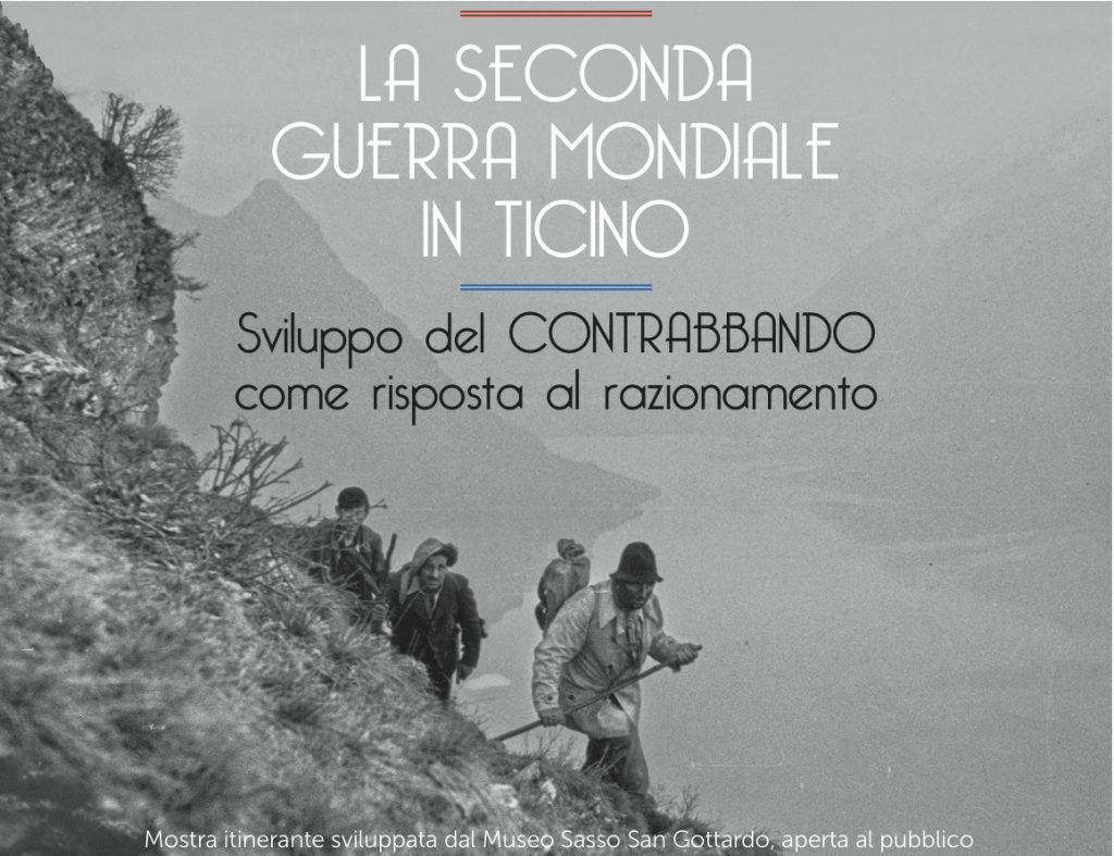 La mostra, dopo aver fornito al visitatore diverse informazioni sullo svolgimento della Seconda guerra mondiale e sui suoi effetti, in Svizzera in generale e in Ticino in particolare, parte proprio da qui, mettendo in luce i tratti principali e le caratteristiche di questo fenomeno, ma anche alcune curiosità e le particolarità legate al contrabbando tra Italia e Canton Ticino durante gli anni della guerra.