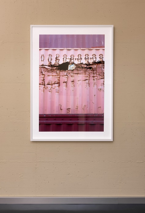 Vero protagonista del progetto è un elemento, ossia il container, il modulo metallico di lunghezza standard, diventato la vera misura del mondo contemporaneo per la sua trasportabilità combinata via mare e via terra, e che costituisce il metro e simbolo esatto della globalizzazione delle merci. E che possiede anche un’altra caratteristica: l’essere un’unità di colore uniforme, che suggerisce combinazioni sempre diverse fra moduli di compagnie diverse e di diversi colori. Nelle immagini del fotografo ticinese ne vediamo decine, sovrapposti in ipotetici palazzi colorati, oppure in piramidi, in configurazioni che danno vita a vie e spazi anonimi, seppur multicolori. E l’impressione è proprio quella di addentrarsi in una città di metallo, considerate le dimensioni dell’istallazione, tuttavia completamente disabitata.