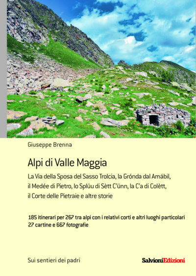 Con il nuovo libro Alpi della Valle Maggia (della Collana Sui sentieri dei padri, Edizioni Salvioni, 2020) Giuseppe Brenna rende omaggio all’ingegno dell’alpigiano di una regione che ama tantissimo e ne documenta l’opera monumentale su questa «terra grandiosa» per vastità, paesaggisticamente molto variata, impervia e selvaggia. Lunga linearmente una cinquantina di chilometri, è compresa tra 250 e 3000 metri di altitudine. Si estende su 569 chilometri quadrati e rappresenta un quinto del territorio del Ticino anche se è abitata solo dal 2% della popolazione del Cantone. La ricerca è frutto di una meticolosa rivisitazione in solitaria dei suoi alpi, corti, medée, monti alti, mater (promontori affacciati sui dirupi) e luoghi speciali entrati tutti in questo ampio nuovo e aggiornato censimento. Piuttosto che le tragedie e l’emigrazione, l’autore preferisce evidenziare gli aspetti positivi della vita dei padri, con senso di gratitudine, rispetto e profonda comunione spirituale, accompagnandoci alla scoperta di scalinate, passaggi strategici nella roccia, scalini scavati sulle placconate, muri di tutti i tipi, sovende e canali per l’acqua, splüi e cascine. Qui la vita pastorale intensa di un tempo ha ceduto il passo all’abbandono e al degrado, nonostante non manchino esemplari isolati casi di manutenzione da parte di proprietari, società, volontari, cacciatori.