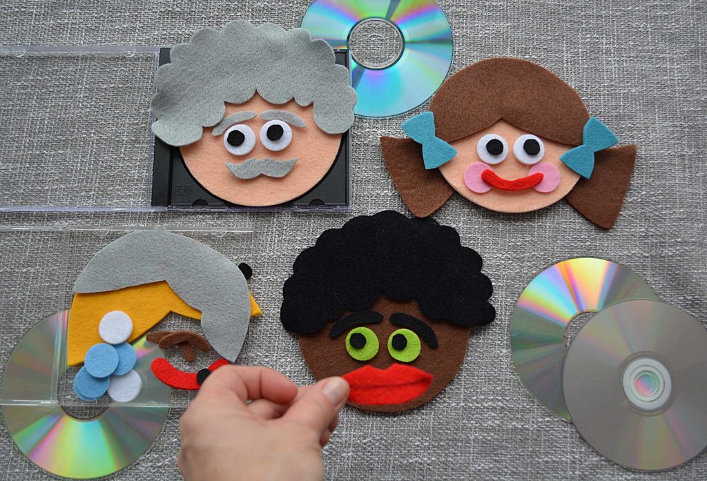 Le vostre facce da cd aspettano di essere create. Riponete i volti nelle custodie mentre per tutti i piccoli pezzi potete utilizzare una custodia alla quale avrete tolto il porta cd in modo da aumentarne la capienza.