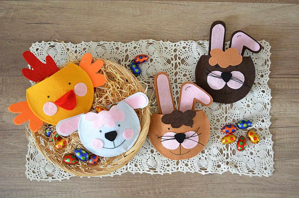 Ecco un’alternativa simpatica al classico uovo di Pasqua o al coniglietto di cioccolata. Dei teneri animali in feltro che al loro interno possono contenere piccoli dolci come ovetti di zucchero o cioccolatini.