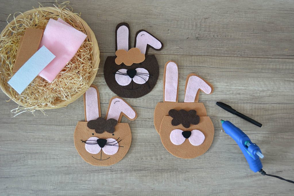 Si realizzano senza bisogno di cuciture, semplicemente seguendo i cartamodelli, ritagliando le varie parti e incollandole tra loro e si prestano oltre che come dono ai più piccoli anche a decorare la tavola pasquale.