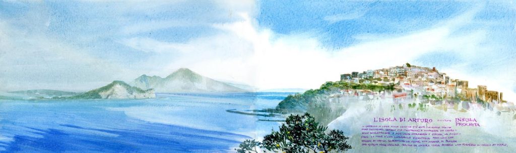 «La mia isola […] ha varie spiagge dalla sabbia chiara e delicata, e altre rive più piccole, coperte di ciottoli e conchiglie, e nascoste fra grandi scogliere. Fra quelle rocce torreggianti, che sovrastano l’acqua, fanno il nido i gabbiani e le tortore selvatiche, di cui, specialmente al mattino presto, s’odono le voci, ora lamentose, ora allegre. Là, nei giorni quieti, il mare è tenero e fresco, e si posa sulla riva come una rugiada. Ah, io non chiederei d’essere un gabbiano, né un delfino; mi accontenterei d’essere uno scorfano, ch’è il pesce più brutto del mare, pur di ritrovarmi laggiù, a scherzare in quell’acqua» così, Elsa Morante nel suo romanzo L’Isola di Arturo.