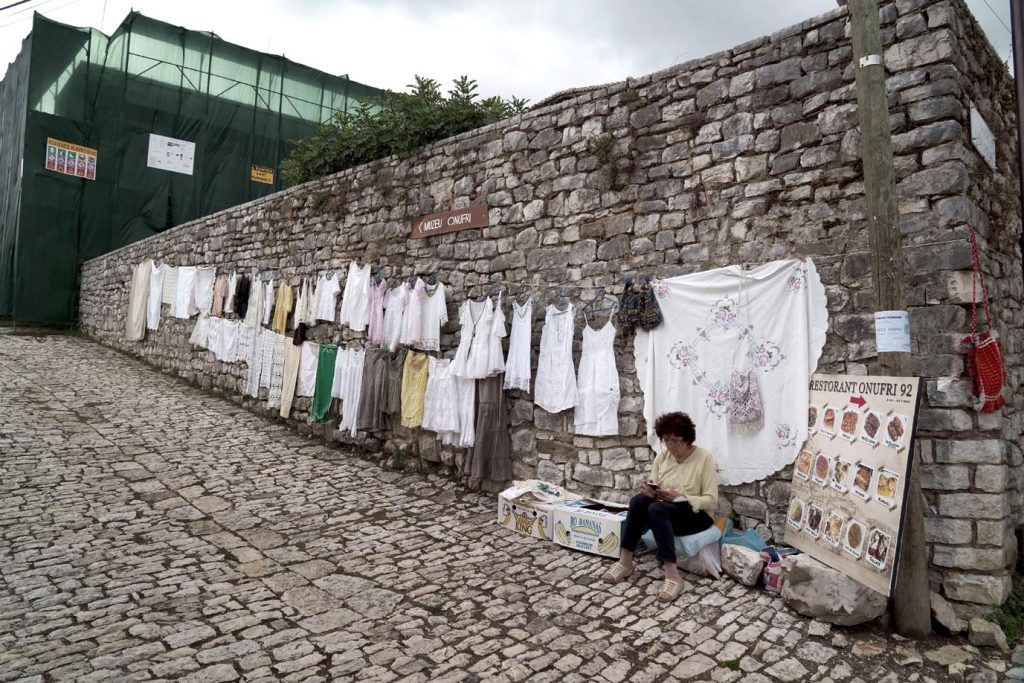 Dichiarata patrimonio dell’Unesco nel 2008, è chiamata anche la Città dalle mille finestre o delle finestre sovrapposte. È attraversata dal fiume Osum, che vanta il famoso ponte ottomano di Gorica, ricostruito nel 1920. Il ponte è il luogo perfetto per capire da dove prende il soprannome questo luogo vetrato.Da qui si vede la città abbarbicata sulle due colline ai lati del fiume, con le sue case basse e un’infinità di piccole finestre come migliaia di occhi che si scrutano a vicenda e che sorvegliano le vie e le genti. «Lo sai che a questo ponte è legata anche una storia triste?» mi dice un venditore di souvenir, con grandi occhiali spessi, seduto dietro alla sua bancarella all’inizio del ponte. «Si racconta che dentro a questa colonna che sorregge il ponte ci fosse una cavità dove veniva rinchiusa una ragazza e fatta morire di fame. Ti starai chiedendo il perché? Per tenere lontani gli spiriti malvagi. Vuoi comprare un souvenir?».