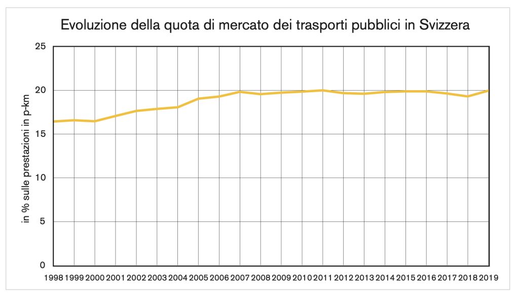 Per le imprese di trasporto esiste dunque un potenziale di crescita elevato ma ancora inespresso. Per l’ente pubblico la progressiva saturazione delle infrastrutture esistenti e la sfida energetica e climatica impongono uno sforzo per favorire un maggiore equilibrio. Una più grande quota di mercato della ferrovia e dei servizi su gomma è in grado di assorbire più traffico e nel contempo di contribuire al raggiungimento di una maggiore sostenibilità. Attualmente sono così in discussione in Parlamento quattro mozioni di analogo contenuto che chiedono l’elaborazione di un piano per l’incremento della quota del trasporto pubblico sul traffico complessivo.