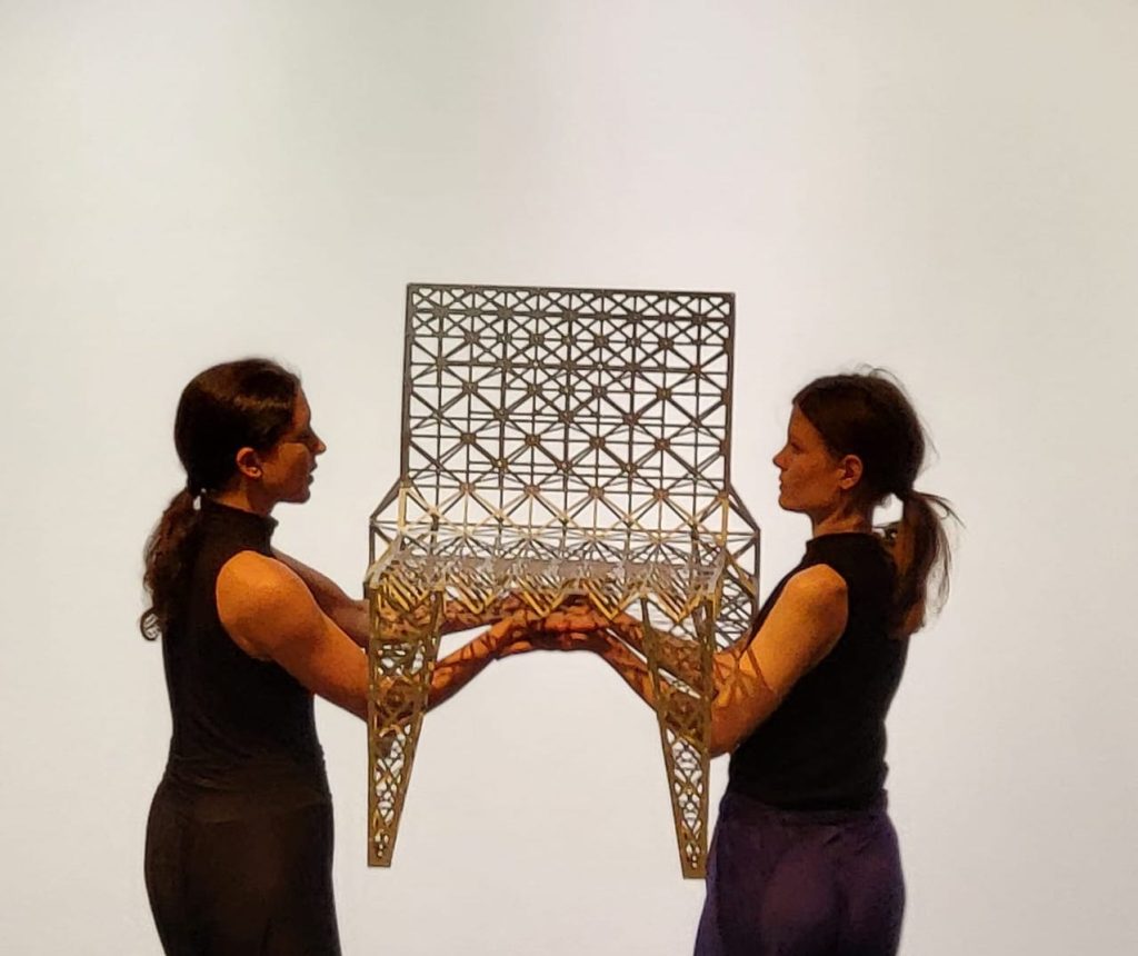 In questo caso l’architetto-designer pone in rassegna i concetti che hanno costituito le fondamenta di un libro d’arte dove fotografia e connotazione sono alla base di un progetto sulla forma, il corpo e la parola. Pubblicato lo scorso anno da Artphilein Edition con, appunto, il titolo Connotazioni, il volume è frutto di un lungo e meticoloso lavoro sulle pagine (Andrea Poletti) e sulla fotografia (Paolo Mazzo) nella ricerca del rapporto tra la sedia, declinata in vari modelli e la materia, il corpo, l’azione. Un catalogo di definizioni realizzate in un fertile periodo di produzione, a partire dalla creazione de La leggera, sedia nata dalla collaborazione con il designer Renato Stauffacher. Il volume presenta 100 foto (selezionate su oltre 3000) dove la trasversalità è il soggetto di un discorso dalla dimensione filosofica e post moderna, un incontro tra antropologia culturale e gioco delle forme, dello spazio, del linguaggio. La serata si snoda sostanzialmente su 5 sedie, sulle loro particolarità e su una dinamica dove lo spazio diventa musica per i corpi danzanti di Nuria Prazak con Lisa Arnaboldi.