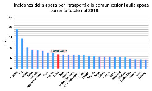 L’evoluzione qui tracciata in modo estremamente sommario, si riflette anche nei dati della spesa pubblica che è interessante osservare in un confronto intercantonale. Prendendo come riferimento il 2018, anno per il quale sono disponibili i dati più aggiornati pubblicati dall’Amministrazione federale delle finanze, si constata che il Ticino registra un’incidenza del settore dei trasporti e delle telecomunicazioni pari al 6,9% rispetto al totale della spesa complessiva. Si colloca così in una posizione mediana rispetto agli altri cantoni. Nel corso degli anni l’impatto di questa voce di spesa, pur rimanendo cospicuo in termini assoluti, si è costantemente contratto in termini relativi. Nel confronto intercantonale il Ticino, un tempo annoverato a pieno titolo con Uri, Vallese e i Grigioni nel drappello dei cantoni prettamente alpini, è scivolato più in basso nella graduatoria e fa ormai compagnia a cantoni urbani o situati sull’Altipiano, come ad esempio Zugo, Argovia, San Gallo e Basilea Campagna. Nel 2018 la quota delle spese per i trasporti pubblici rispetto al totale delle risorse destinate ai trasporti e alle comunicazioni ha toccato il 36,4%. Nella graduatoria intercantonale essa è ancora relativamente contenuta rispetto a buona parte degli altri cantoni, ma certamente non più marginale come un tempo. Lo si vedrà meglio allorché si disporranno dei dati statistici per il 2021 e gli anni seguenti, che esporranno gli effetti dei servizi attivati con l’apertura della galleria di base del Ceneri.