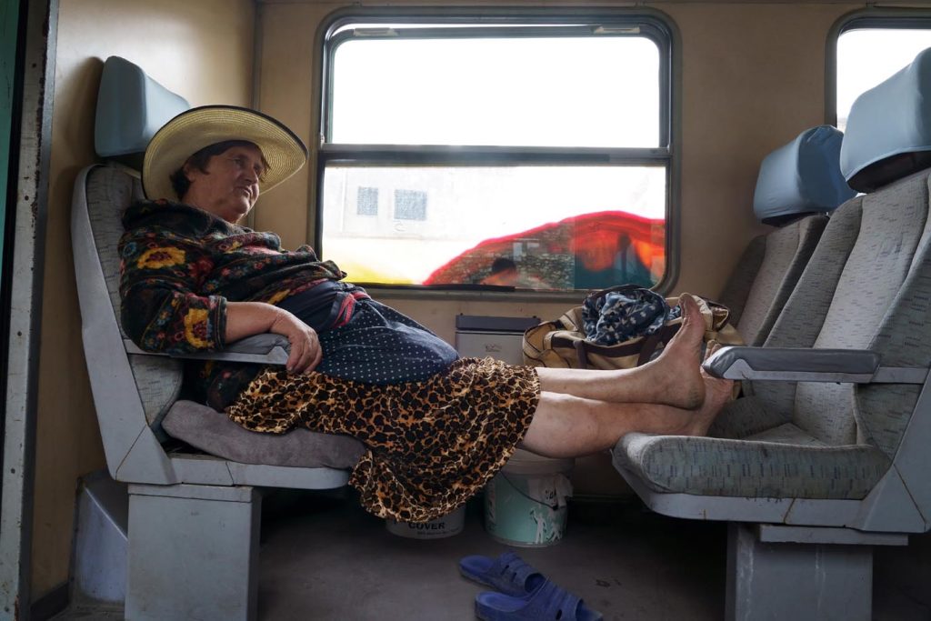Il cielo è diventato grigio e minaccia pioggia. A metà tragitto ritorno nei vagoni dove trovo una contadina con cappello di paglia e i piedi nudi appoggiati sul sedile di fronte. «È andata al mercato a vendere la verdura», mi spiega il controllore. «Oramai lo usano solo loro, perché possono caricare tutto quello che vogliono. E i pensionati, perché costa poco il biglietto».