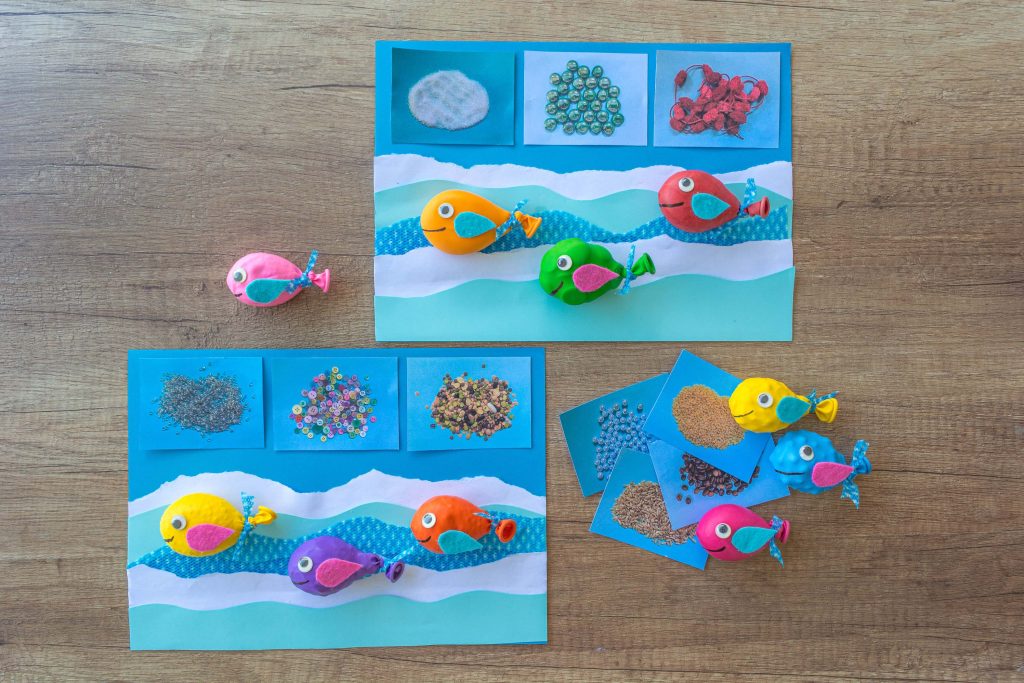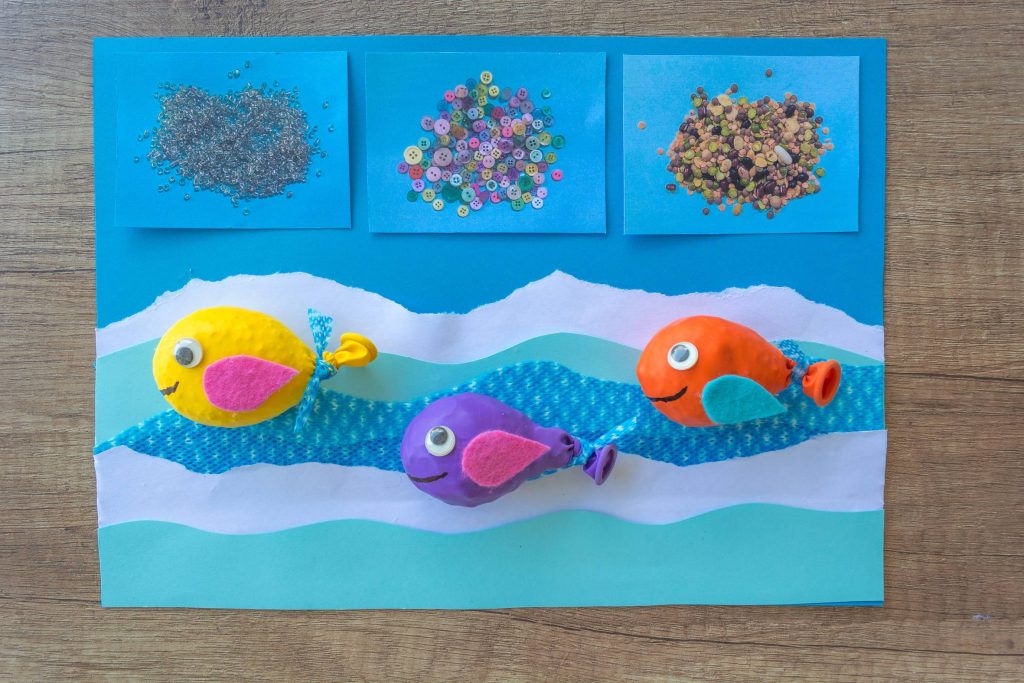 Un memory sensoriale creato con palloncini dai colori vivaci e materiali diversi sia naturali che sintetici comunemente presenti in casa. Un gioco per i più piccoli che manipolando questi pesciolini colorati potranno scoprire differenti consistenze e cercare di abbinare i pesciolini alle immagini dei relativi materiali utilizzati per il riempimento. Un esercizio per sviluppare il tatto utilizzando materiali comuni ma all’occorrenza anche dei simpatici antistress.