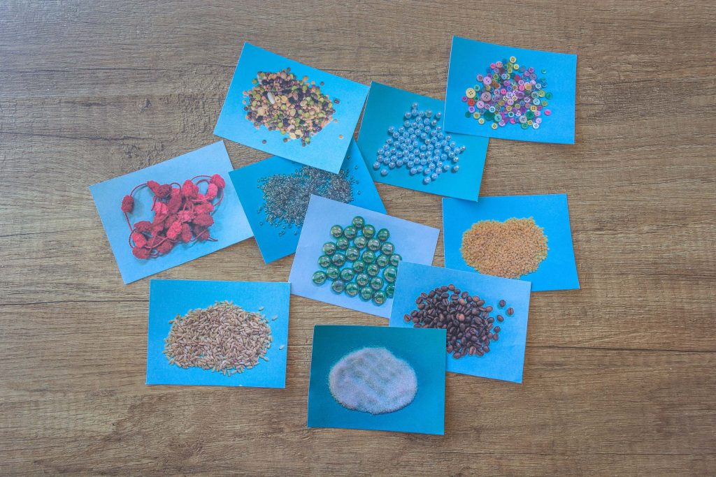 Una volta che pesciolini e sfondi sono pronti potete iniziare a giocare. (Per un utilizzo durevole nel tempo se avete a disposizione una laminatrice vi consiglio di plastificare sia le basi preparate a collage che le singole immagini dei materiali). Cosa conterrà il pesciolino? Perline, bottoni, lenticchie? Manipolando i diversi palloncini e le diverse consistenze toccherà ai vostri bambini abbinare i palloncini alle fotografie corrispondenti.