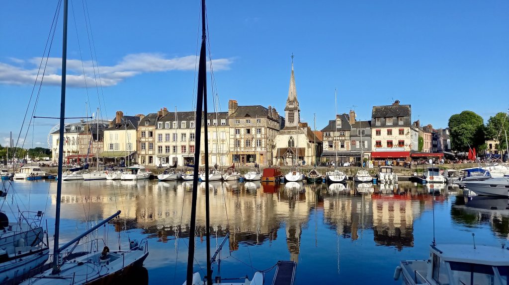 Situato là dove il grande fiume disegna il suo ultimo meandro, il Marais Vernier è una vasta prateria umida disseminata di piccoli villaggi, fattorie con il tetto in chaume, coltivazioni di mele, campi di segale e di grano saraceno, frammezzati con macchie di salici, ontani e pioppi neri. Attraversare questa terra è un piacere dei sensi, che anticipa quello dal gusto più intimamente salmastro e marittimo della fine del mio viaggio: Honfleur, la Perla dell’estuario, bagnata dall’estremo fluire della Senna, che si lascia alle spalle le ultime chiuse e va a sposarsi con il mare.