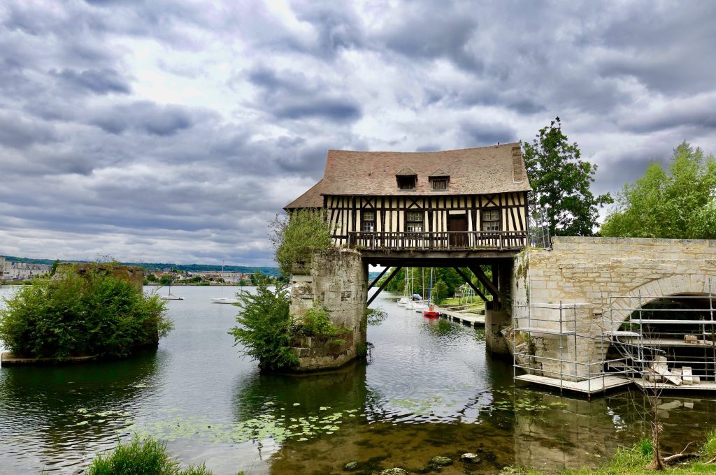 Appoggiato, quasi in equilibrio instabile, sulla testata dell’antico ponte di legno che attraversava la Senna, di cui rimangono solo alcuni piloni capitozzati, il mulino risale al sedicesimo secolo ed è l’unico sopravvissuto dei tanti che se ne stavano lì, sospesi sulle arcate, tra una riva e l’altra del fiume.