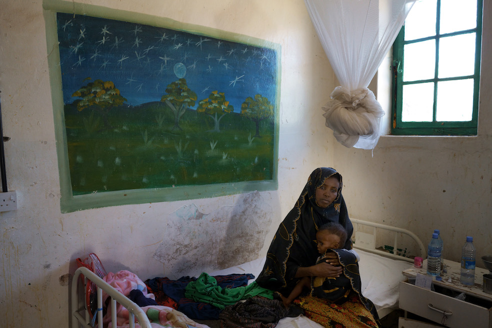 Ad Hassan viene da ricordare il passato, quando da ragazzo faceva il pastore insieme al padre: «Vedi quegli alberi di baobab laggiù in fondo? Ecco, quando ero giovane e portavamo qui la nostra mandria di cammelli c’era molta più erba per gli animali». Le condizioni climatiche estreme privano sia animali sia uomini dei mezzi di sostentamento, e soprattutto i bambini iniziano a soffrire di malnutrizione, che li rende deboli e più esposti alle malattie. È sufficiente visitare il reparto malnutriti dell’ospedale di Hergeisa, la capitale del Somaliland. Un reparto spoglio, letti accostati ai muri, troppo grandi per i bambini che ci sono sdraiati sopra. In uno di questi è sdraiato Ibrahim, un fagotto di due anni tutto pelle e ossa. Accanto la madre Amina con lo sguardo fisso sul figlio come a volergli dare quelle forze che gli mancano. «È qui da pochi giorni; vengono da un campo profughi del nord – mi dice il giovane dottore Asad. La siccità ha distrutto quasi tutto da quelle parti. Vivono grazie agli aiuti umanitari, ma molte volte non bastano».