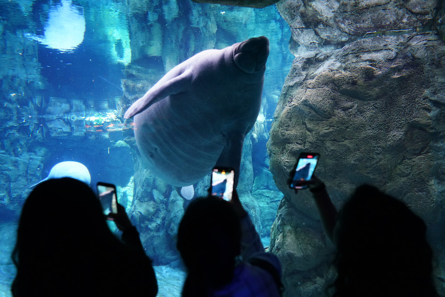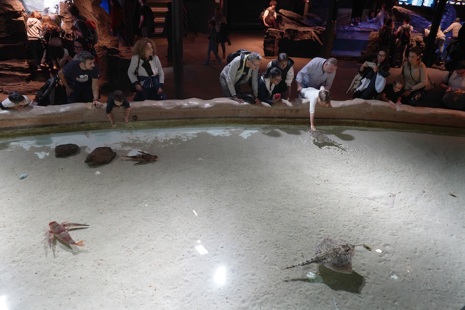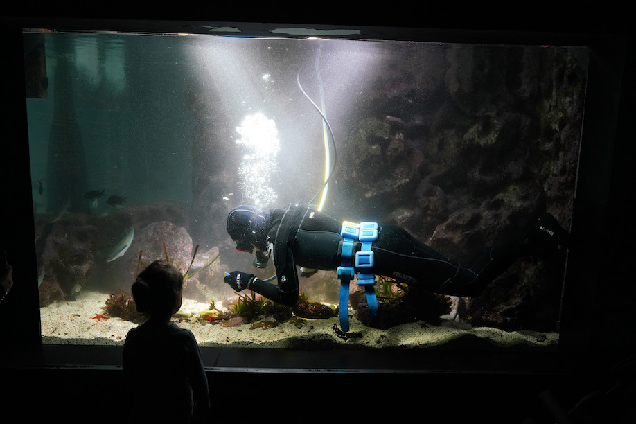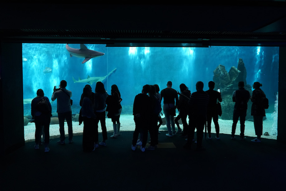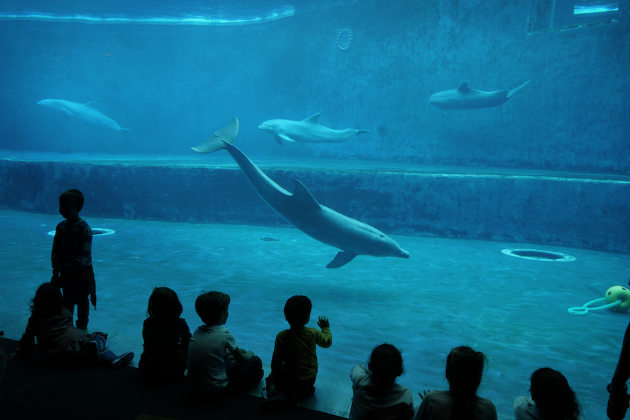 Camminando nei corridoi dell’acquario, dove le luci sono soffuse, si rimane affascinati davanti alla grande vasca dei delfini: sembra che danzino quando li si vede nuotare sott’acqua, illuminati dalla luce solare che filtra dall’alto dalla grande piscina all’aperto. Si immergono e poi risalgono verso la luce. I bambini sono incantati, forse ricordano i personaggi di una favola. Sembra tutto tanto bello a guardarlo da qui. Se non fosse che un terzo della popolazione marina è a rischio estinzione a causa della pesca estensiva, mentre almeno un terzo degli habitat marini è già andato distrutto.