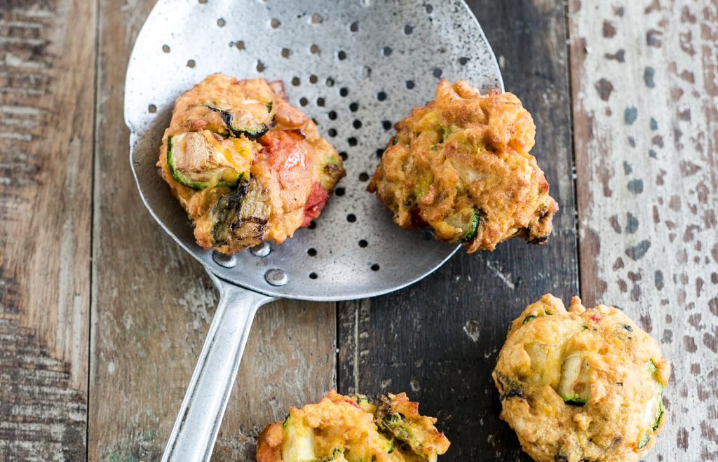 Ingredienti per 4 persone: 250 g di farina di ceci – 100 g di zucchine, 100 g di carote – 100 g di cimette di cavolfiore – 100 g di cipolle – 100 g di melanzane – 1 cucchiaino di bicarbonato – 1 cucchiaino di garam masala – 1 cucchiaino di coriandolo secco – 1 cucchiaino di peperoncino – olio di semi per friggere – sale.