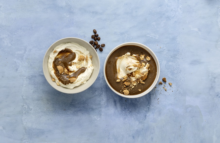 Ingredienti per 4 persone: 2,5 dl di panna intera, 60 g di zucchero, 50 g di chicchi di caffè, 2,5 dl d’acqua, 3 c di caffè istantaneo in polvere, 20 g d’amido di mais, 1 uovo, 250 g di mascarpone, 40 g di amaretti