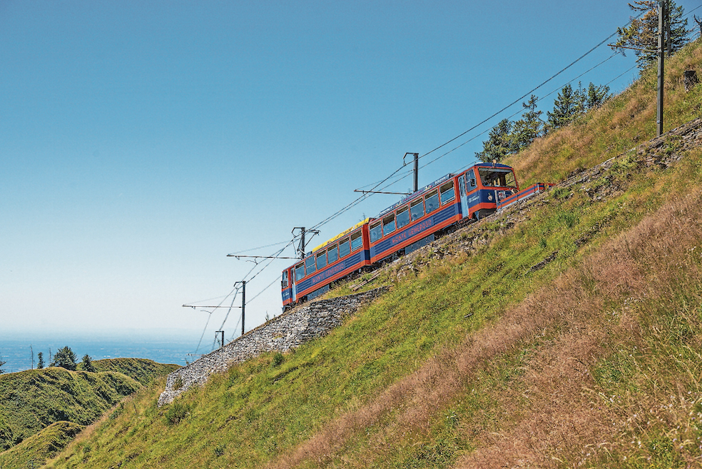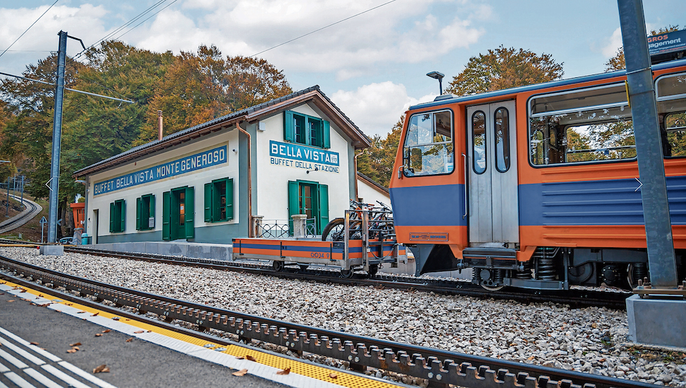 È questo il tempo trascorso dall’inizio dei lavori di ristrutturazione dei binari della cremagliera che – da 133 anni – dalla stazione di Capolago-Riva San Vitale porta in vetta al Monte Generoso (lo ricordiamo, è l’unica cremagliera su territorio ticinese), e più precisamente al Fiore di pietra, situato a un’altitudine di 1704 metri. Una ristrutturazione nata sulla scia del desiderio della Monte Generoso di diventare una destinazione green, abbinata alla consapevolezza dell’importanza storico-culturale della linea ferroviaria che a partire dal 1890 ha iniziato a portare i villeggianti al Grand Hotel Bellavista – fino a quel momento raggiungibile unicamente a dorso di mulo o trasportati su una portantina. Gottlieb Duttweiler, fondatore di Migros, in un momento in cui l’attrazione turistica sembrava superata, anche a causa dei nefasti avvenimenti bellici, nel 1941 aveva acquistato la ferrovia, fermamente intenzionato a darle continuità («come rinunciare a una terrazza panoramica tanto spettacolare?», avrebbe detto), e oggi la Ferrovia Monte Generoso appartiene al Percento culturale Migros, che dal 1957 sostiene iniziative culturali e sociali.