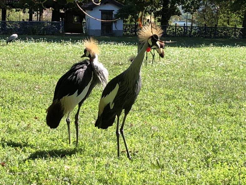 In un’assolata domenica che profuma di mentuccia selvatica, Simone, figlio del proprietario, guida piccoli e grandi visitatori affascinati, che sciamano nei prati fioriti di margherite alla ricerca di animali da avvicinare. Pavoni e gru passeggiano fra le aiuole, mentre Andrea, figlio di Simone e nipote di Gerolamo, mostra ai più piccini dove trovare le tartarughe e le lepri. I wallaby saltellano nel bosco oscuro della riva settentrionale. Qualcosa si intravede, ma fissarli con l’obiettivo è quasi impossibile. Poi c’è lo stagno coperto di ninfee, con le rane e le libellule. E laggiù in fondo, oltre il canale-peschiera, l’ex pollaio ospita un micro-museo fotografico. Non pare possibile che poche centinaia di metri raccontino una storia così variata…