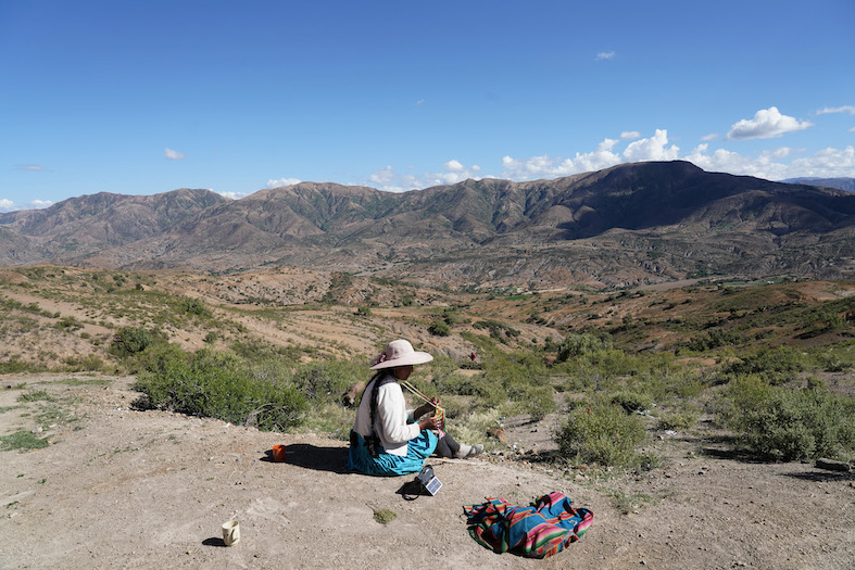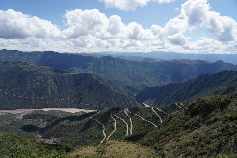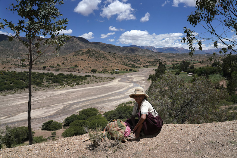 Le nuvole dense e corpose sembrano toccare le vette delle montagne. Giù in basso il Rio Caine segna il confine tra il dipartimento del Nord di Potosi e quello di Cochabamba. Di solito è maestoso e tempestoso, ma ormai anche lui soffre per i cambiamenti climatici: ha poca acqua, sembra quasi in secca, anche se è da poco finita la stagione delle piogge. Le rive sono distese di sabbia e il vento alza mulinelli di polvere.