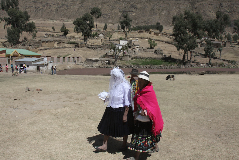 Le grida dall’esterno annunciano l’arrivo della sposa. La funzione religiosa lascerà poi spazio alla festa, con balli e bevute di chicha, la bevanda alcolica di mais fermentato che, ingurgitata in grande quantità, porterà sollievo per alcune ore e forse farà dimenticare la dura vita di tutti i giorni.