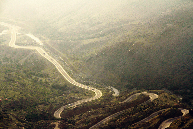 Ci vuole pazienza, ad attraversare la regione dell’Asir. Si naviga quasi sempre tra i 2000 e i 3000 metri di altitudine, in un continuo ondeggiare di curve, saliscendi ed epiche strade al limite della percorribilità. Come la Nosab Road, che passa dai 2200 metri agli 800 in 12 km, 63 tornanti e una pendenza dell’11%. Senza contare le nebbie che calano all’improvviso, le feroci raffiche di vento e le schiere di babbuini pronti a invadere la carreggiata o a saltare sul cofano delle auto in sosta, fuggendo allarmati se si tenta di fotografarli.