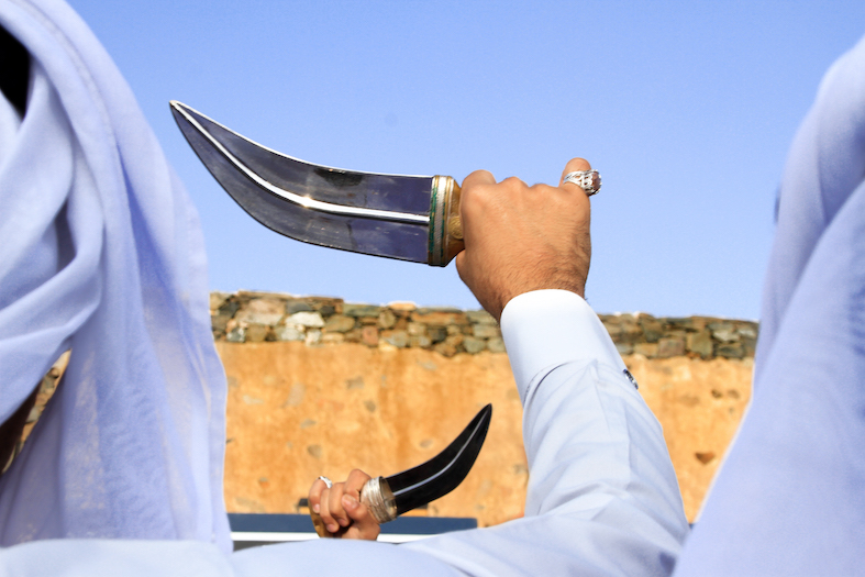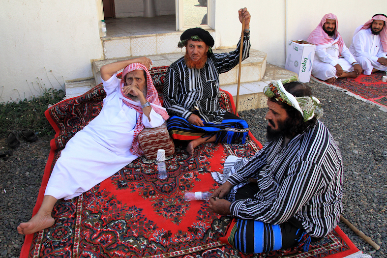 Possiedono tratti somatici che poco hanno in comune con i sauditi. E usanze piuttosto originali. Come tingersi barba e capelli con l’henna coltivata nell’area di Jizan, a ridosso dello Yemen, o vestire lunghe gonne variopinte dette futa, chiuse a portafoglio e strette in vita da una cintura sulla quale brilla la jambiya, tradizionale pugnale ricurvo e riccamente decorato che dona prestigio a chi lo porta, ma che è anche virilmente esibito durante la scenografica danza dei coltelli, spesso sfoderato per suggellare giuramenti, talvolta persino chiamato a scacciare gli spiriti maligni.