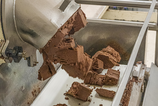 Dopo che la Migros ha dato l’ok, la «Côte d’Ivoire» è entrata in produzione. Che comincia proprio dai semi di cacao consegnati da Amsterdam (vedi articolo su «Azione» del 15 maggio) che poi vengono liberati scrosciando fragorosamente dai loro sacchi da una tonnellata alti come un uomo. I semi vengono quindi sterilizzati mediante calore e sgusciati a macchina, fase che porta alla luce i cosiddetti nibs, il puro cacao. Il cacao ha un gusto amaro, ma piacevole e di una certa eleganza, che ricorda solo da lontano il cioccolato. Dopo la tostatura è invece l’inverso: l’amarezza va in secondo piano mentre la «cioccolosità» domina la scena. Infine, i nibs vengono triturati finemente.