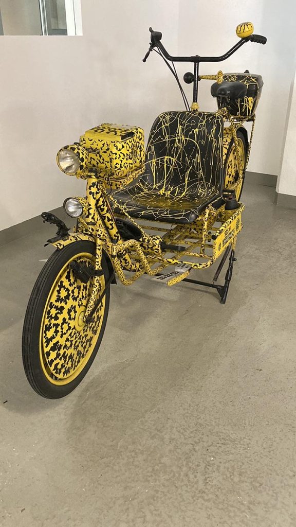 Alzo gli occhi e, a far da lampade, vedo le ruote, con i rispettivi raggi, di diverse biciclette. Sono, sinceramente, meravigliata. Ginelli se ne accorge e mi apre una porta. «Qui ci sono tutte le bici del Locarno Film Festival». Un vero spettacolo in giallo e nero. «L’Atelier Ri-cicletta di SOS Ticino è presente dal 1999 al Locarno Film Festival. Siamo noi – ci dice con malcelato orgoglio Giovanni Ginelli – il fornitore ufficiale delle bici pardate. Biciclette vecchie, già utilizzate, di seconda o terza mano e magari un po’ ammaccate. Le rimettiamo a nuovo, le vestiamo di pardo e queste nostre bici trovano nuovi proprietari, una nuova opportunità di vita e nuove storie da vivere».